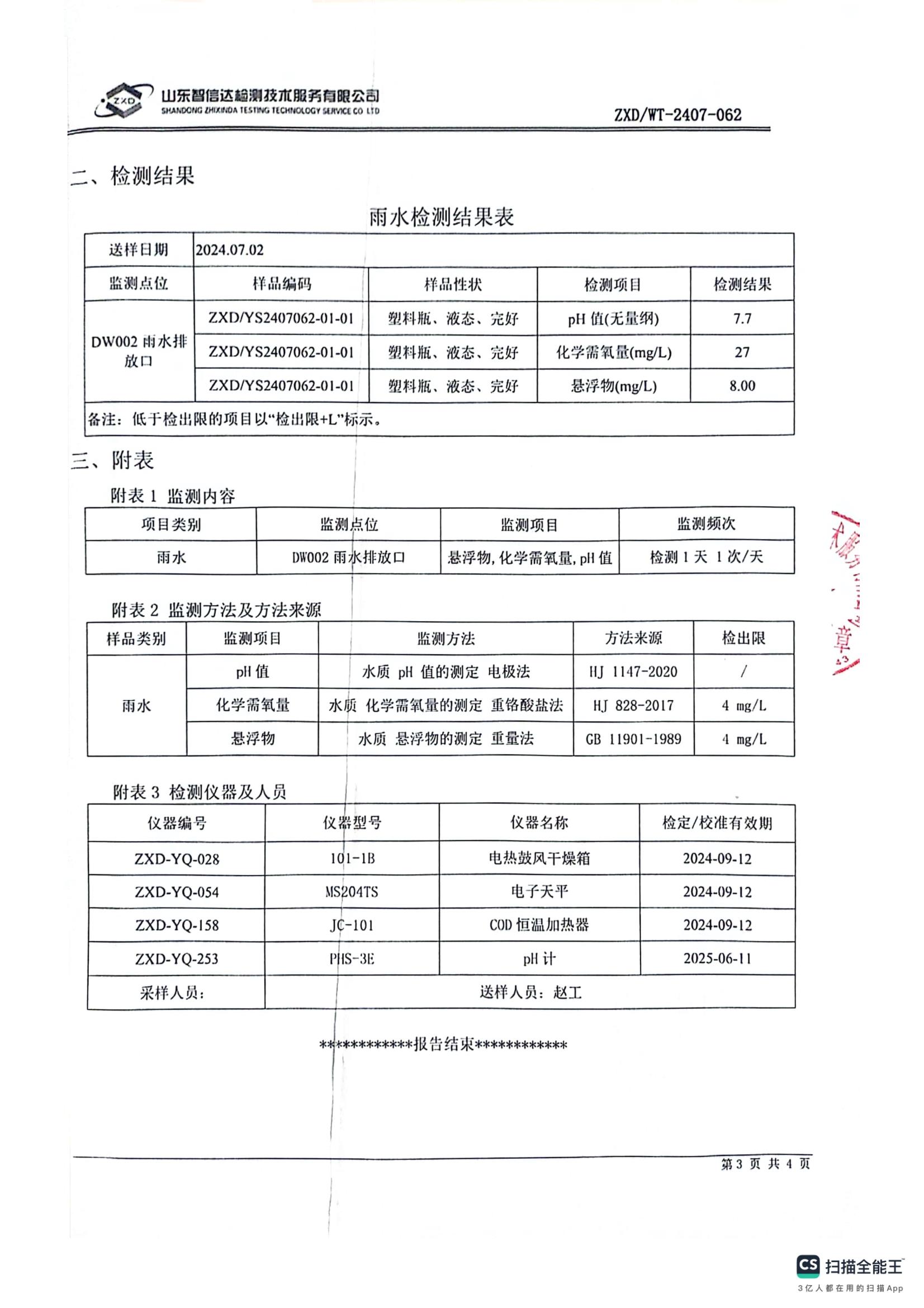 雨水检测报告