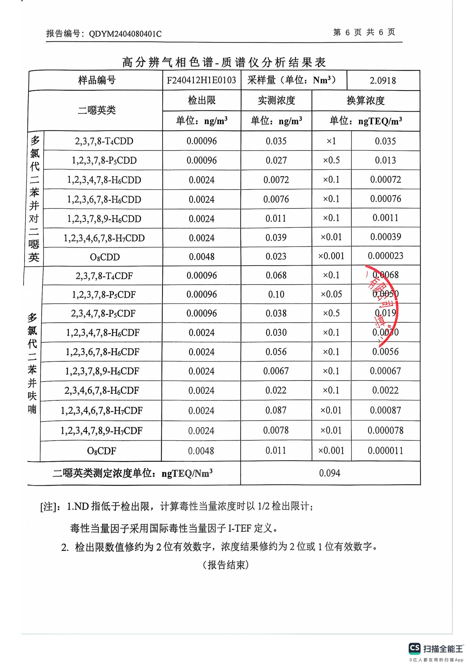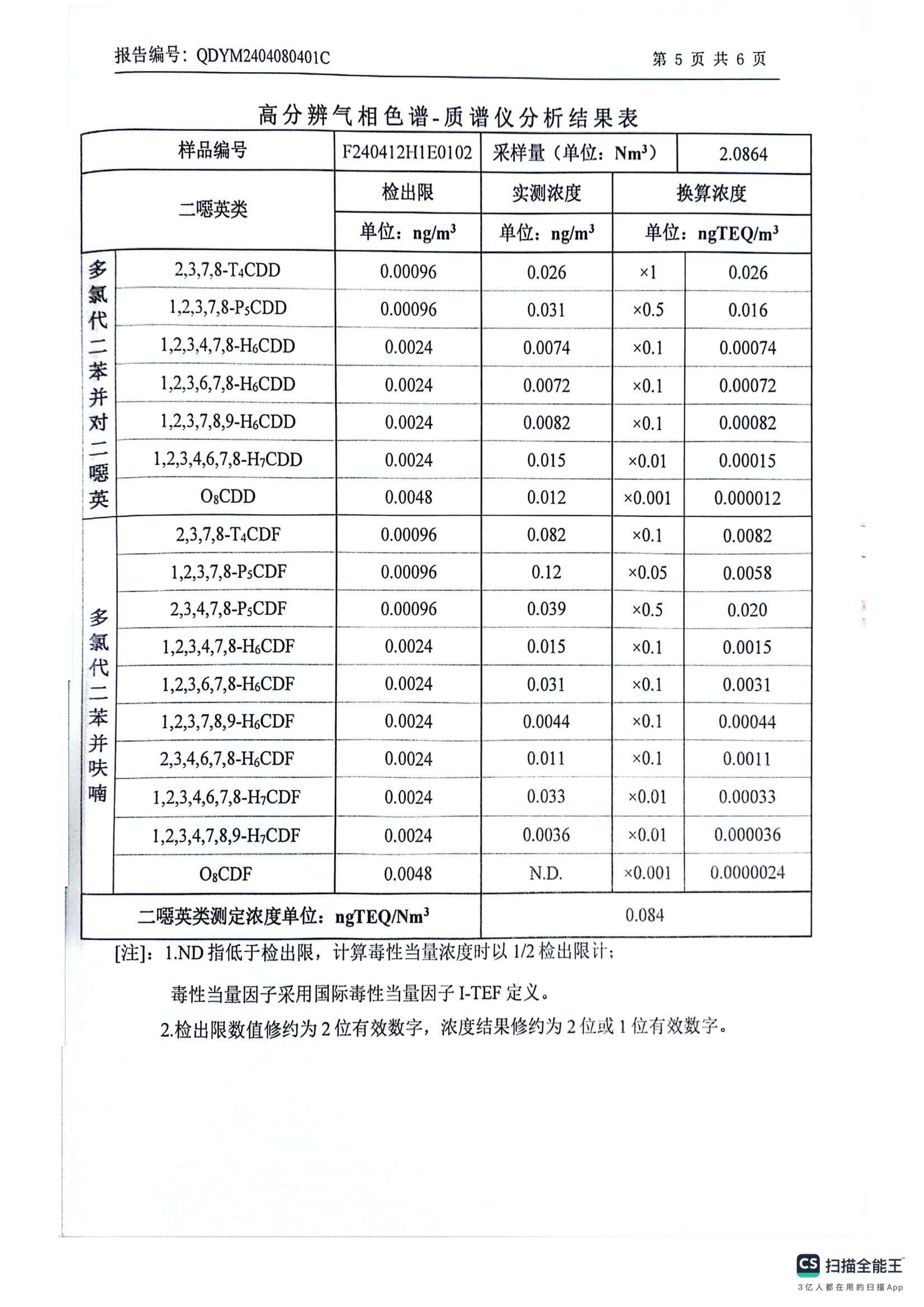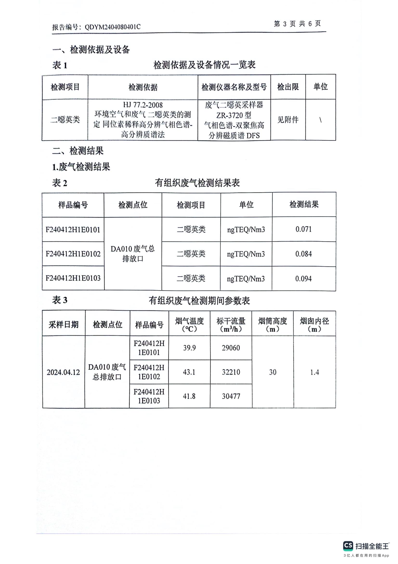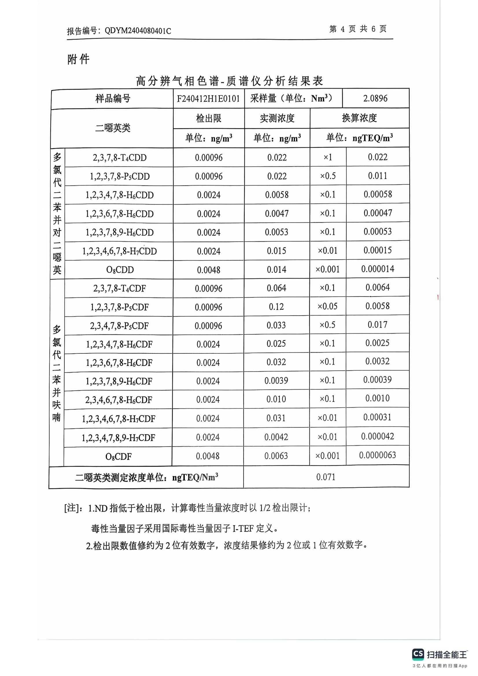 二噁英检测报告