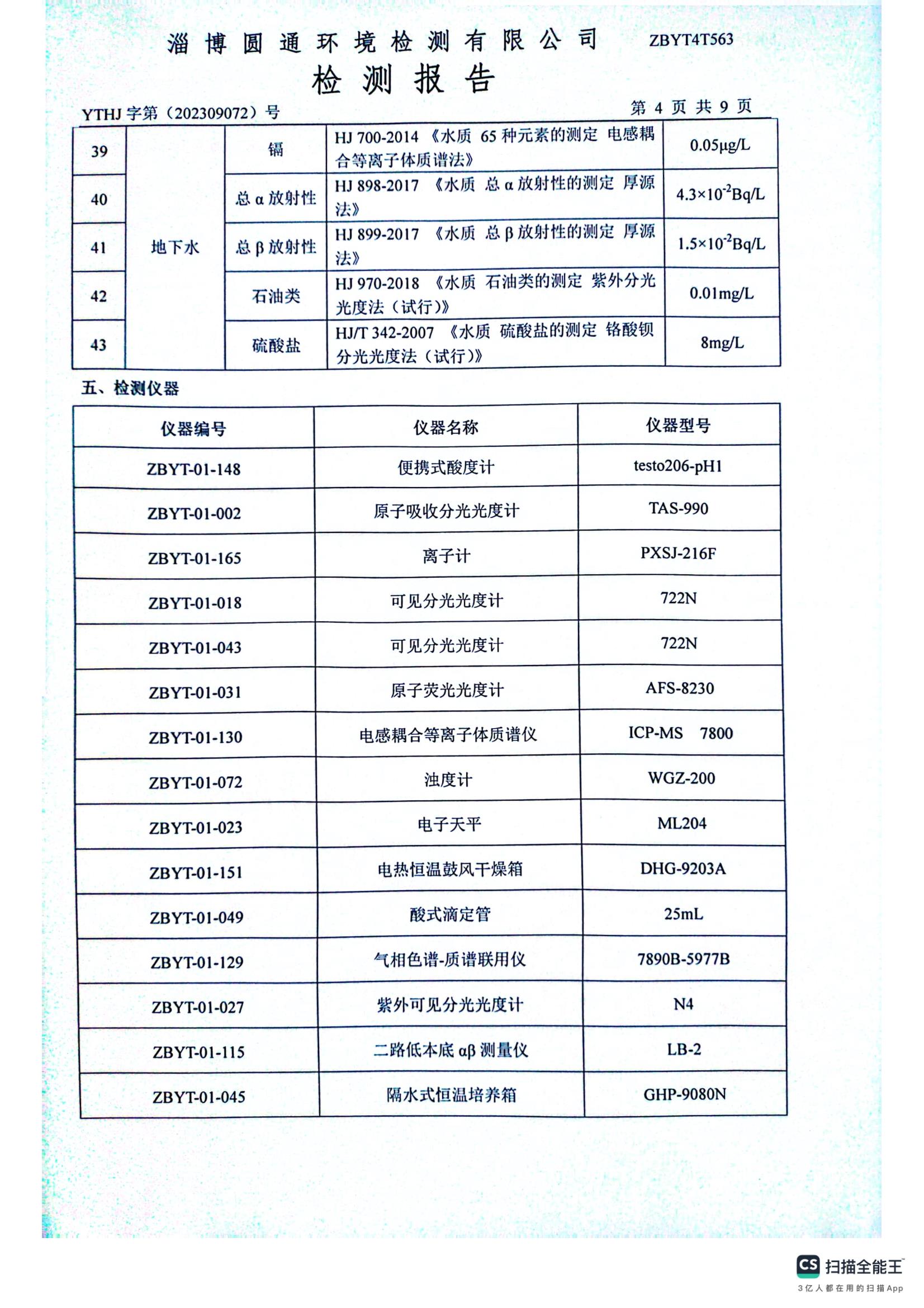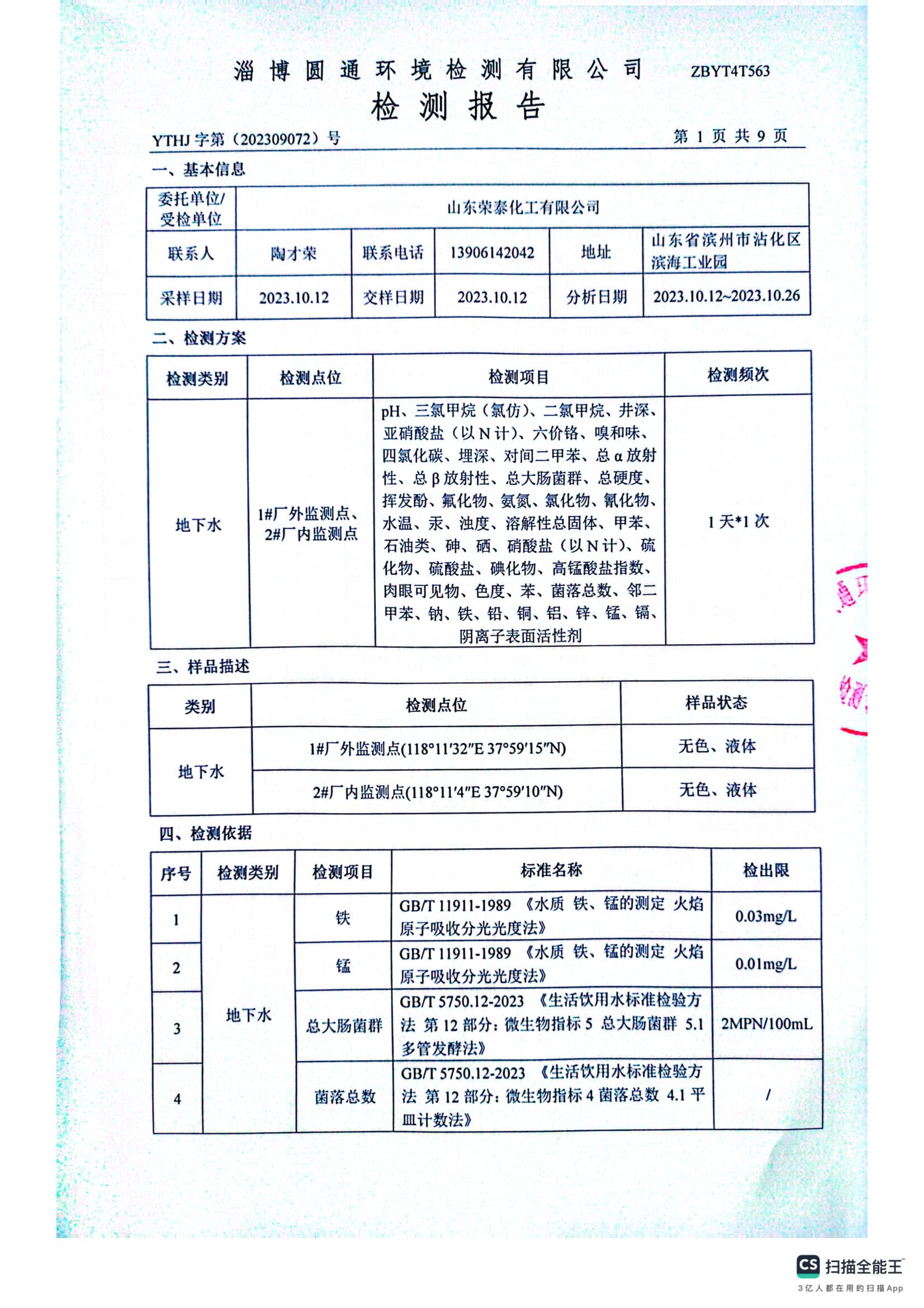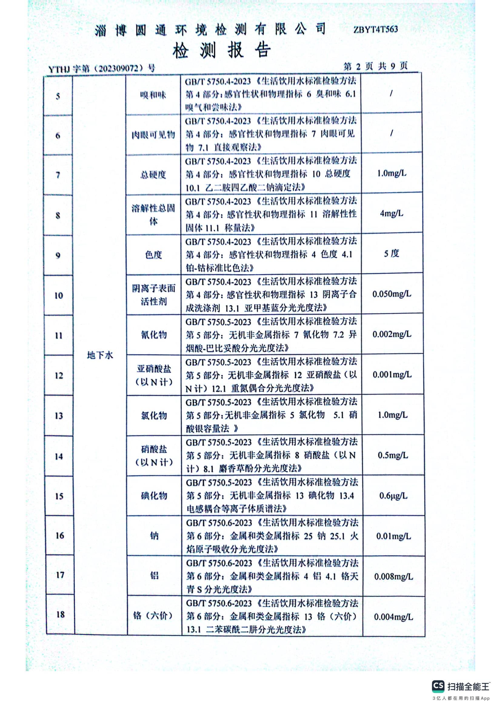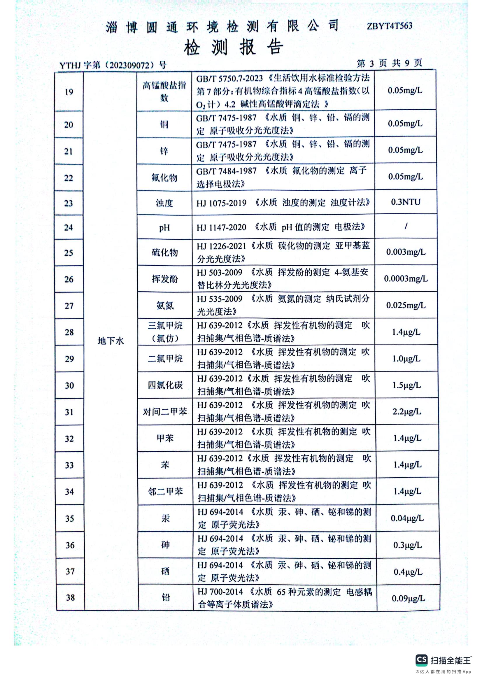 10月地下水检测报告