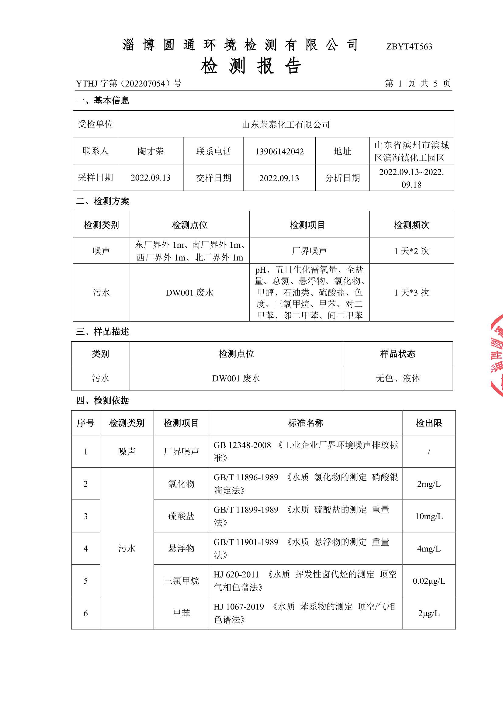 环境质量现状检测项目(季度)