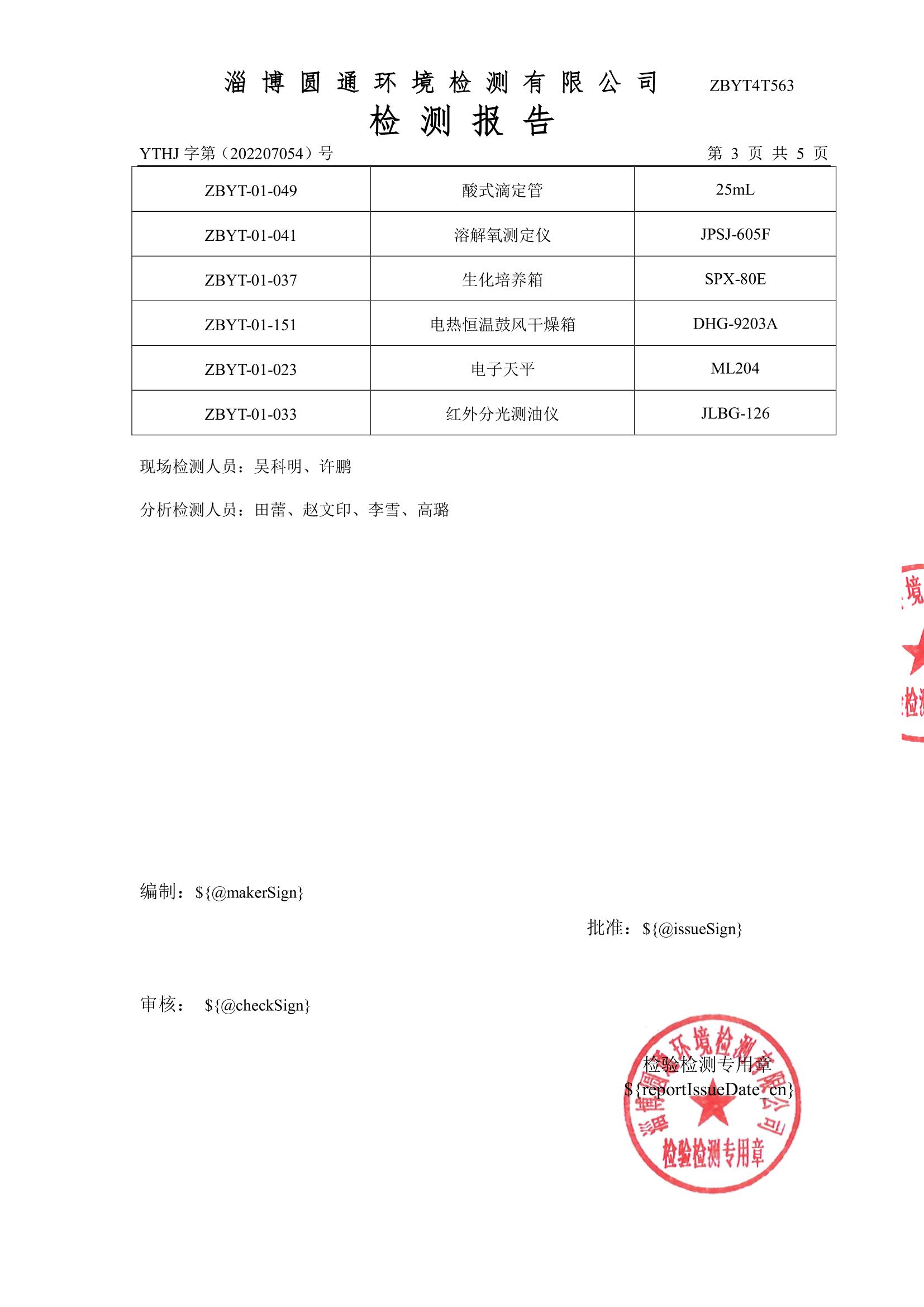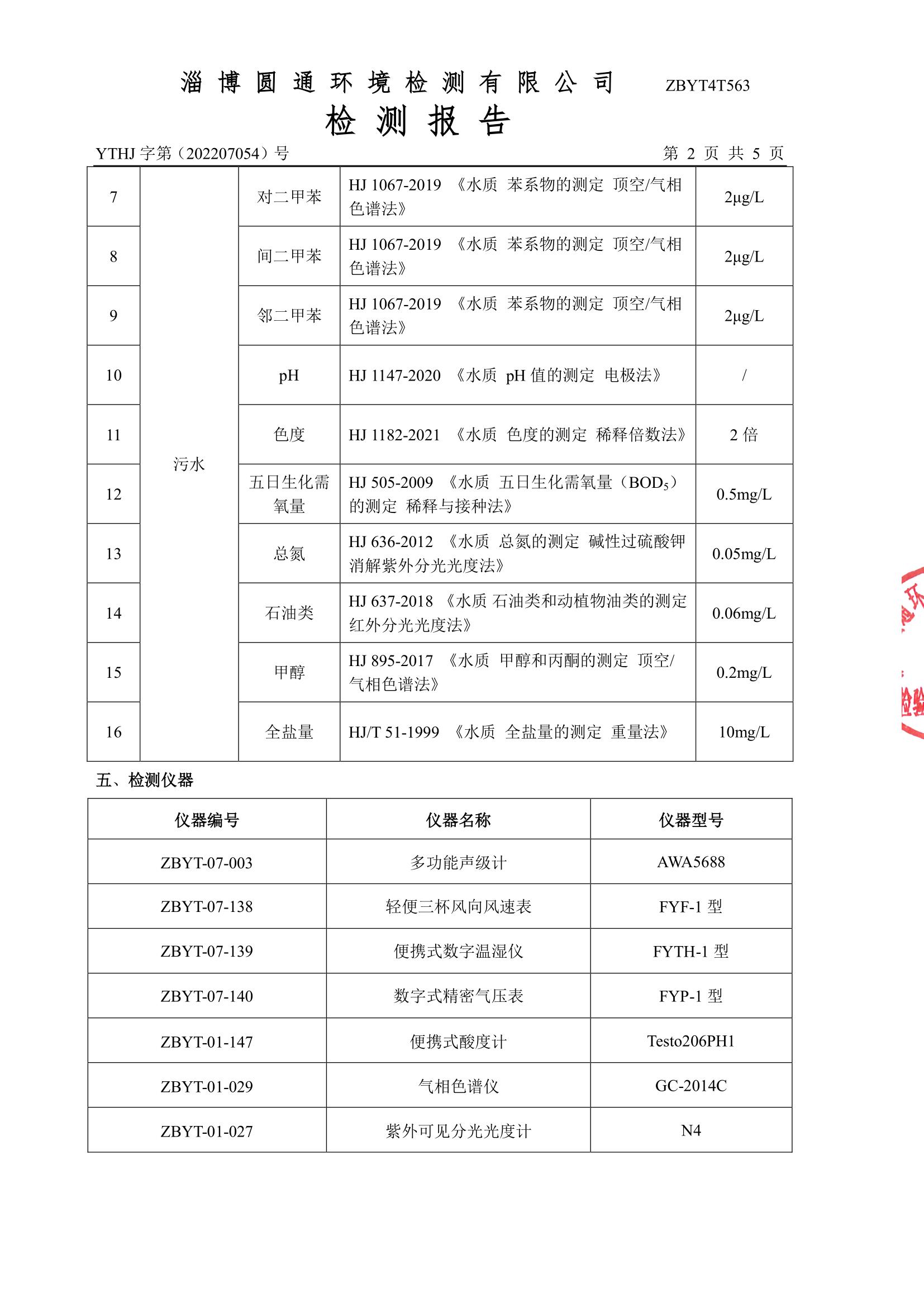 废气检测项目(月度)